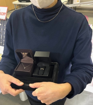 都内某所にお勤めのT様にK18地金甲丸リングとK18ダイヤモンドペンダントをご購入いただきました。