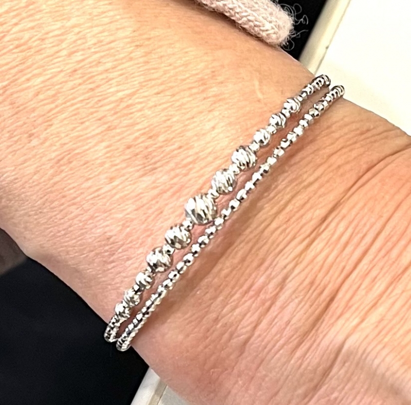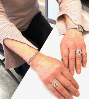 通常チェーンタイプのブレスレットは着けるのが難しく、手間取ることが多いかと思いますが、こちらのブレスレットは手間取る事もありません。素早くサッと着けられて、ボリュームもあるので、1本着けるだけでも装いに華やかさをプラスしてくれるの間違いなしです。